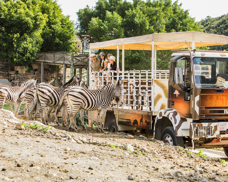 con más de 14 hectáreas de naturaleza, podrás recorrer el parque en un bus con